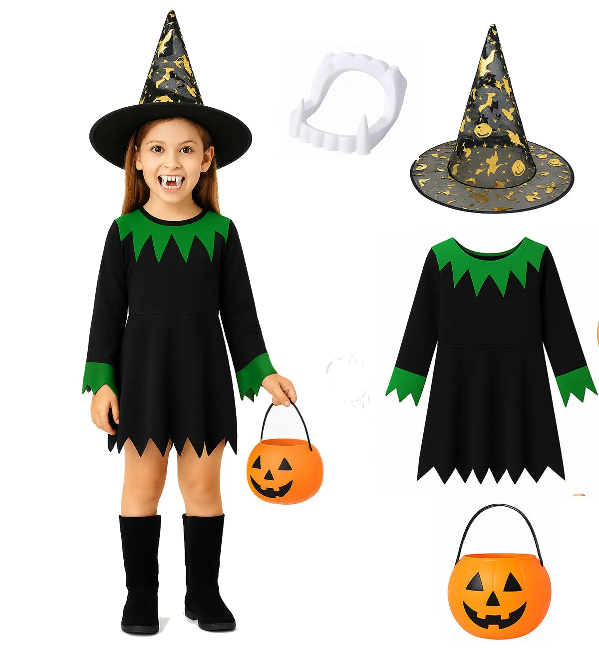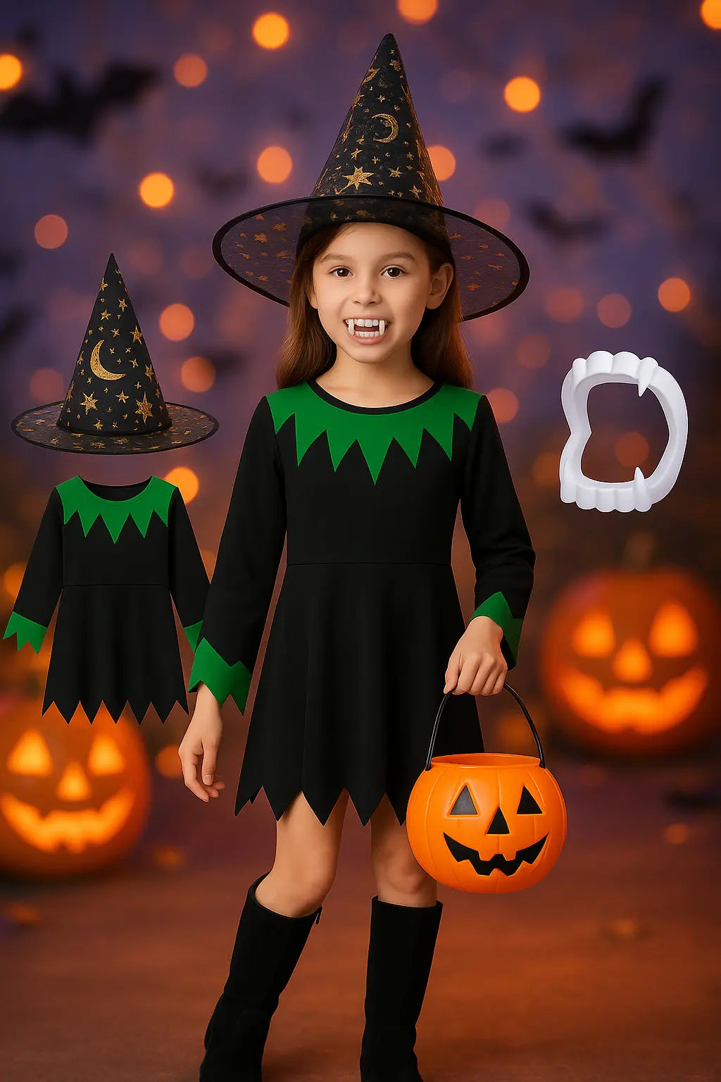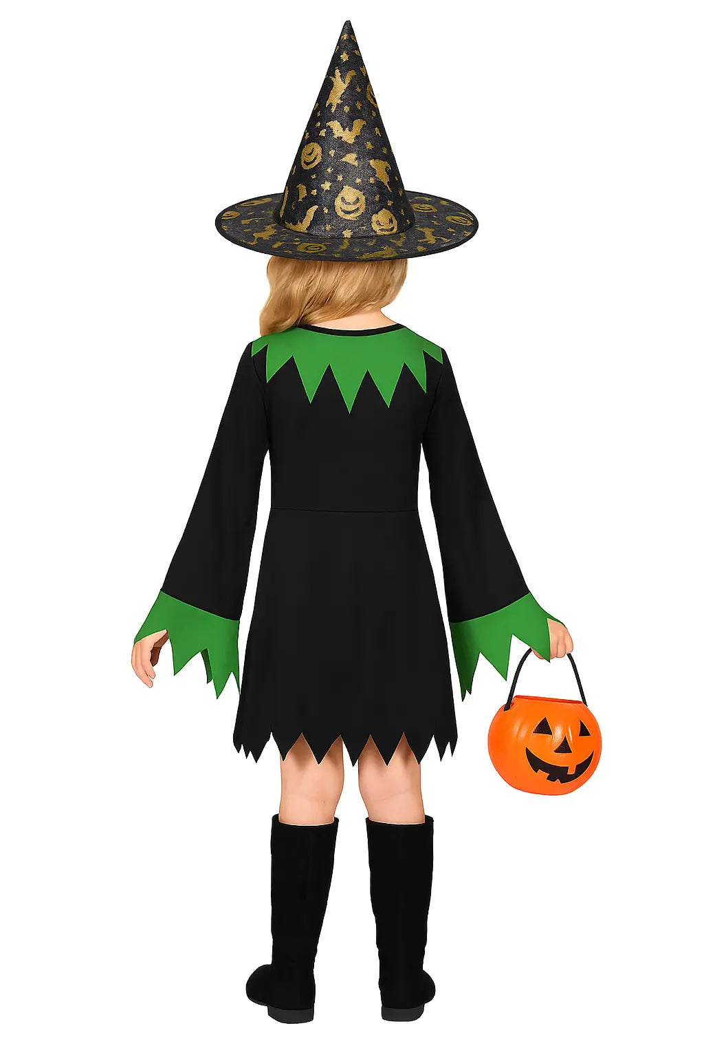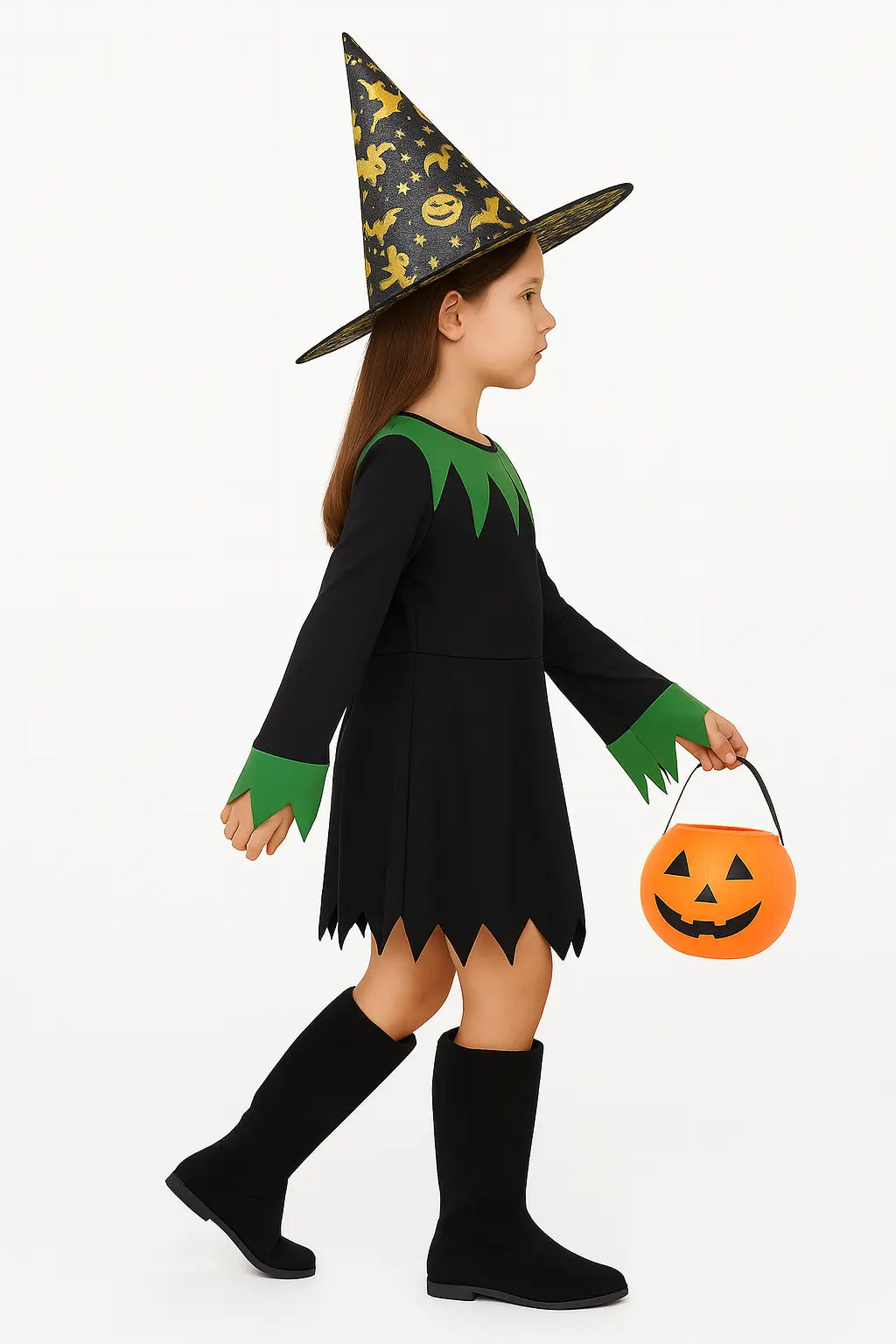 FancyDressWale halloween dress for Girls and Boys pumpkin witch ghost theme costume party Girl -Black-Green