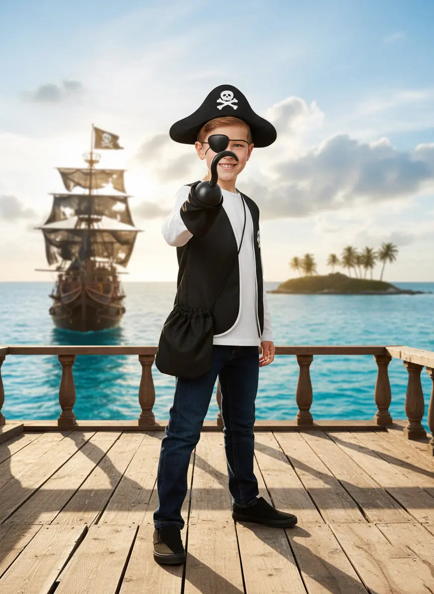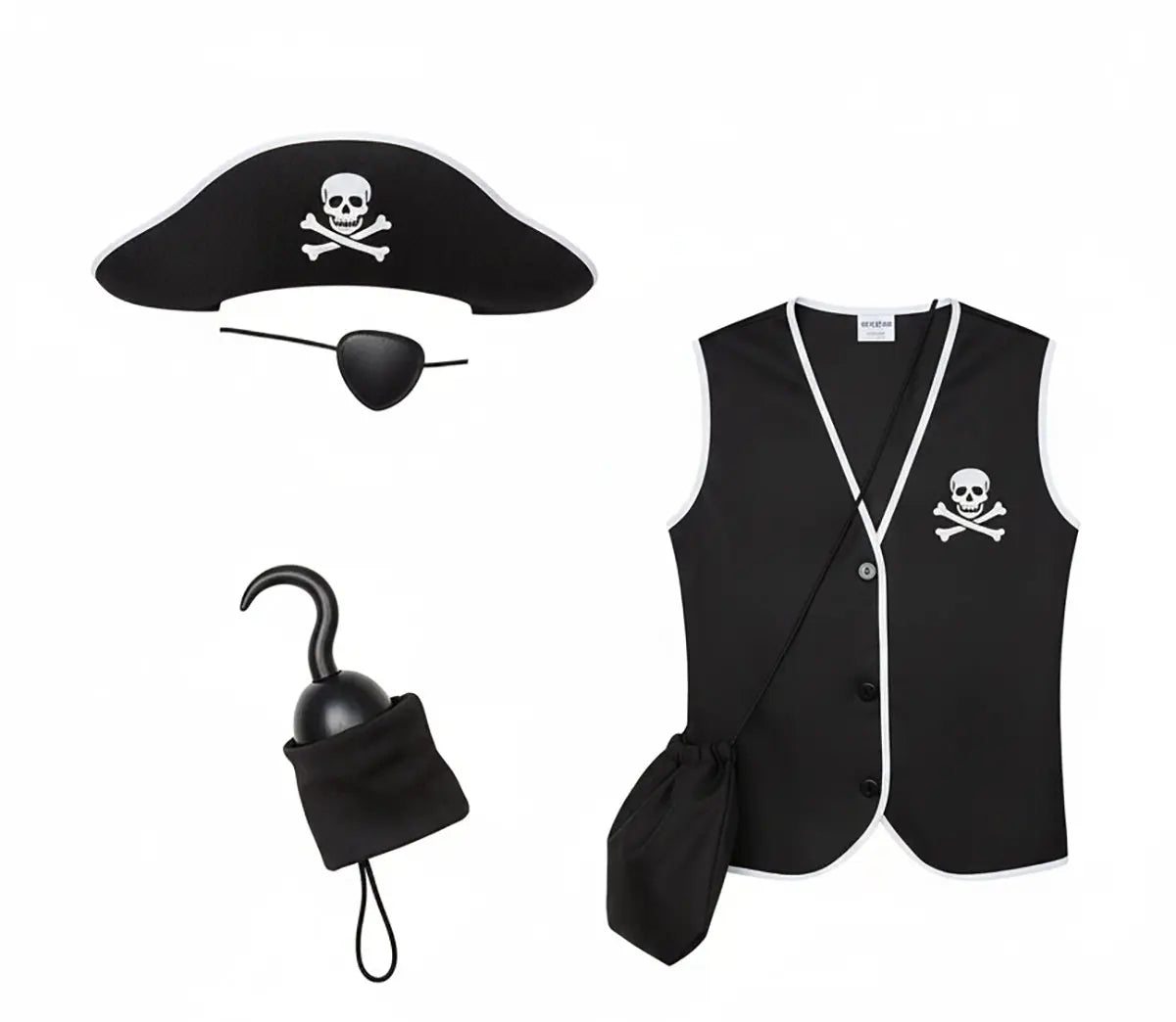 Free Size Jacket suitable of 8-15 years old Contains Pirate Jacket, Eye Patch, Pirate Hook, Bandana and Loot-Bag Read more