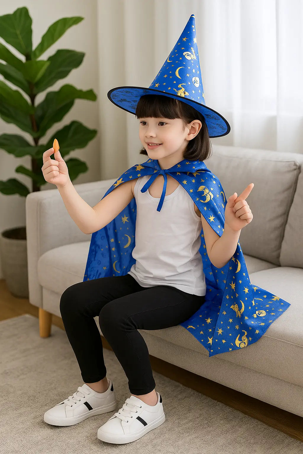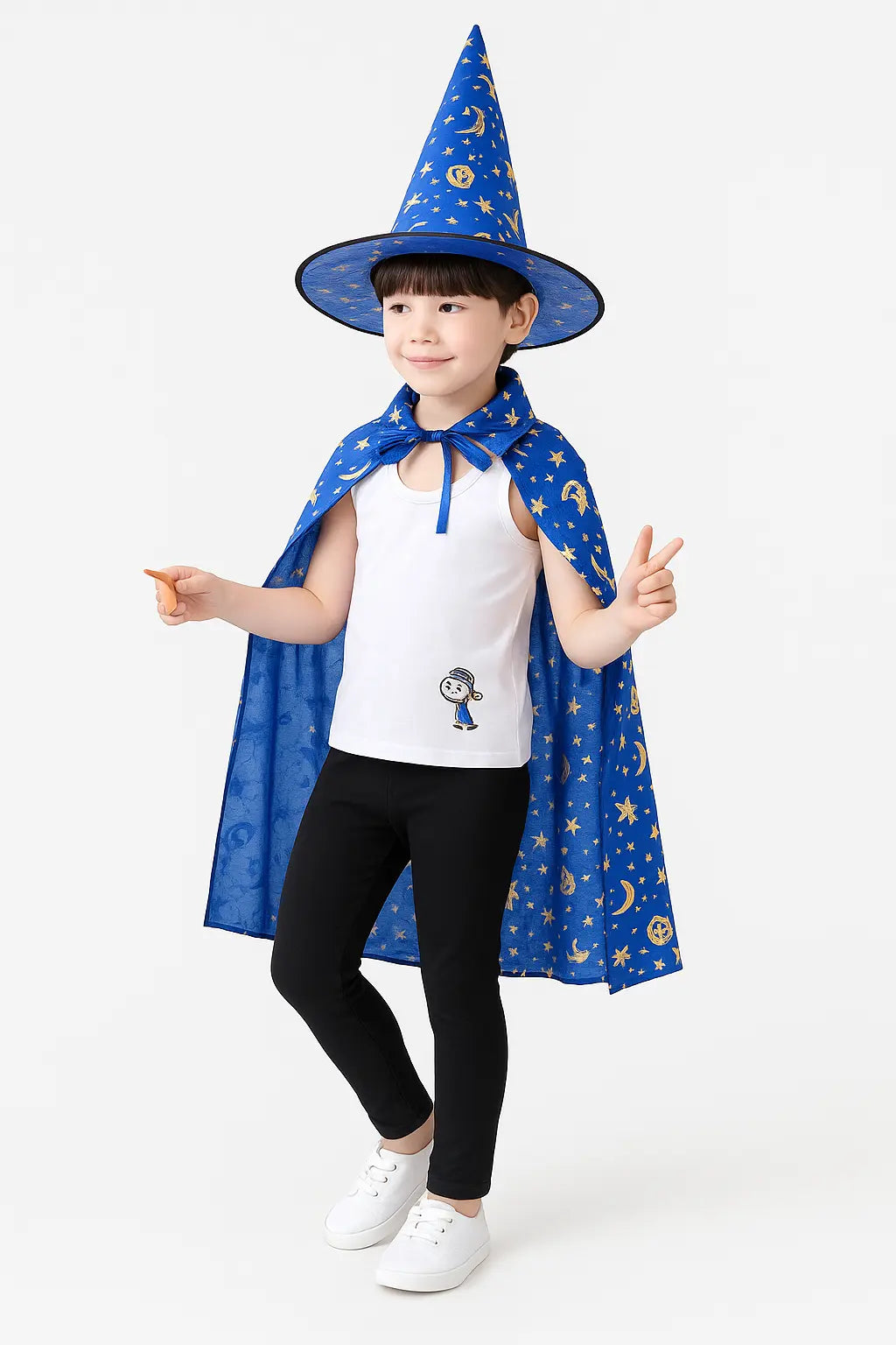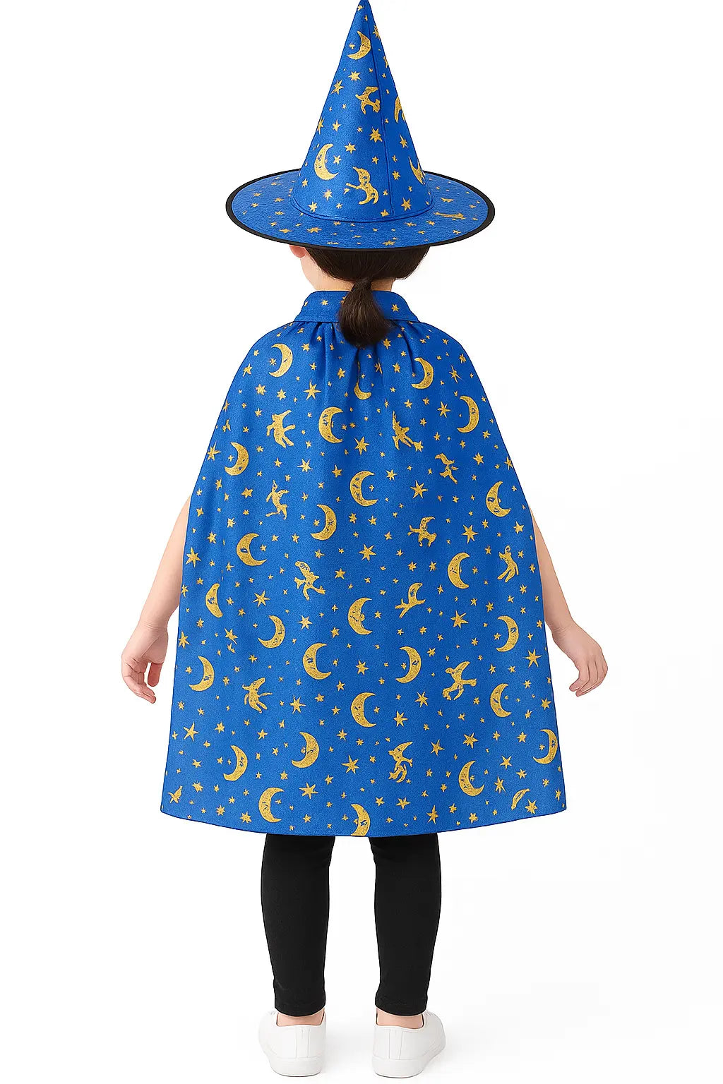 Halloween Cloak Cape Unisex Children Role Play Dress up Costume (Cape & Hat only)-Blue