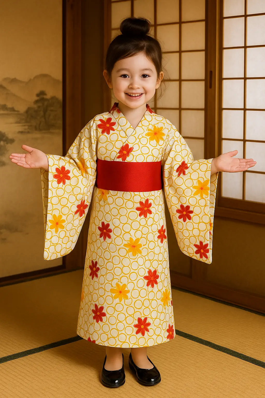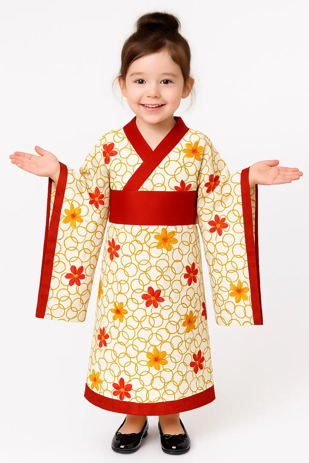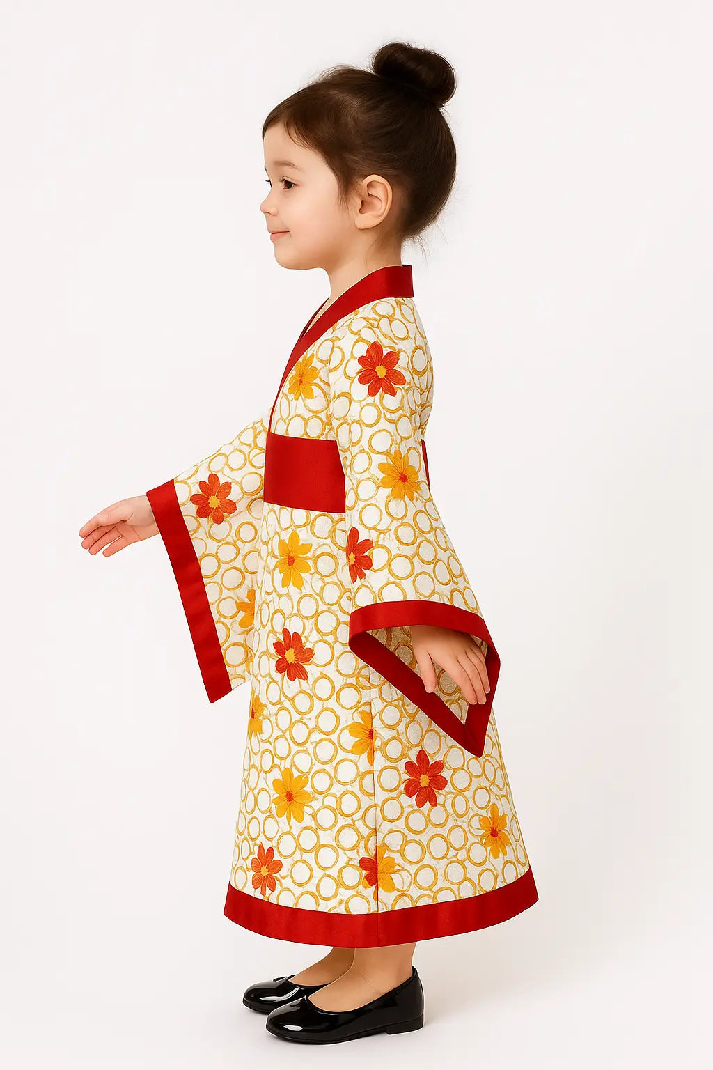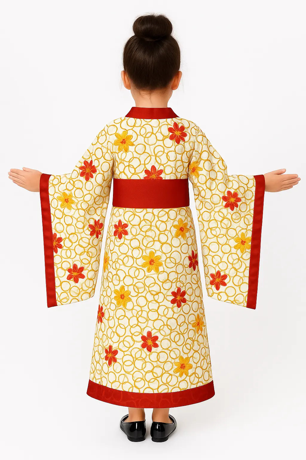 Japanese Kimono Costume for Girls — Elegant Floral Kimono + Obi — Perfect for School Events & Cultural Day