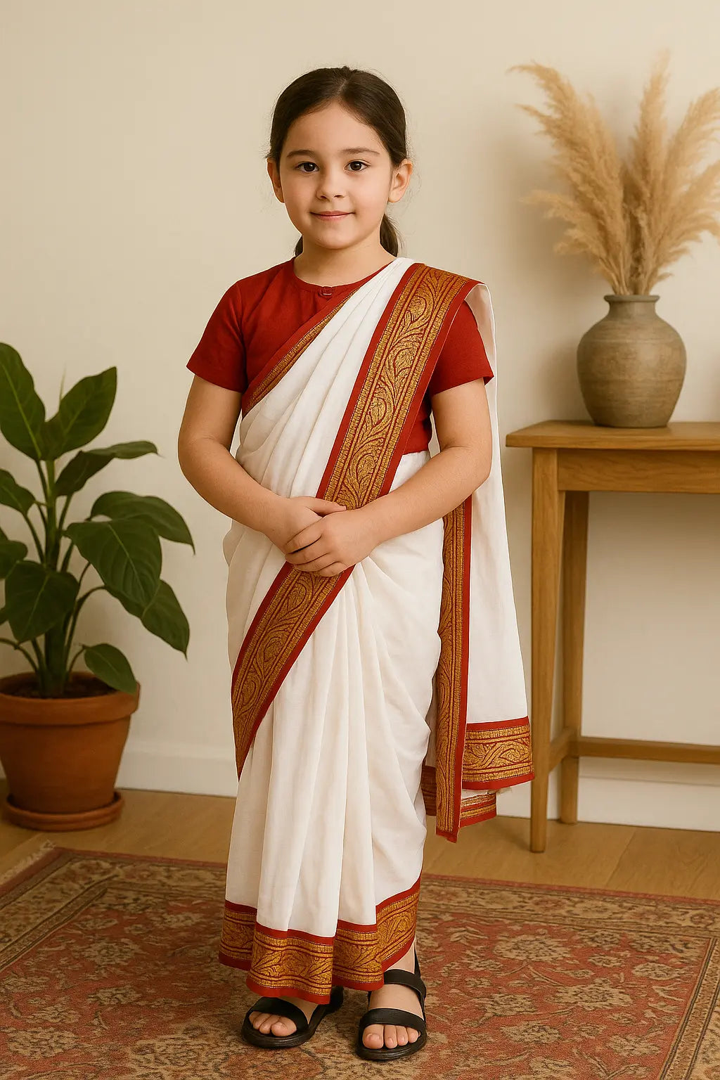 The Bengali saree is a vibrant piece of attire that beautifully captures the essence of Bengali culture. Traditionally woven with intricate designs, these sarees come in a variety of colors and fabrics that appeal to young girls. They not only represent elegance but also the artistic craftsmanship of Bengal. Because many girls wear a Bengali saree in fancy dress competitions, it helps them connect with their roots while showcasing stunning beauty on stage.