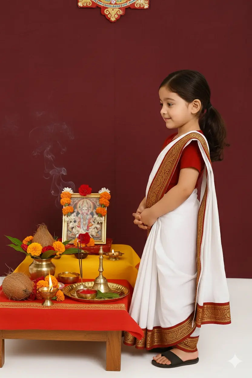 Styling a Bengali saree for young girls can be simple yet effective. Accessorizing with traditional jewelry, such as bangles and earrings, complements the saree's beauty. Additionally, a neatly tied braid or bun hairstyle can enhance the overall look, making it perfect for performances. So, if your little one is participating in a fancy dress competition, choosing a Bengali saree can be an exciting way to express creativity and cultural pride.