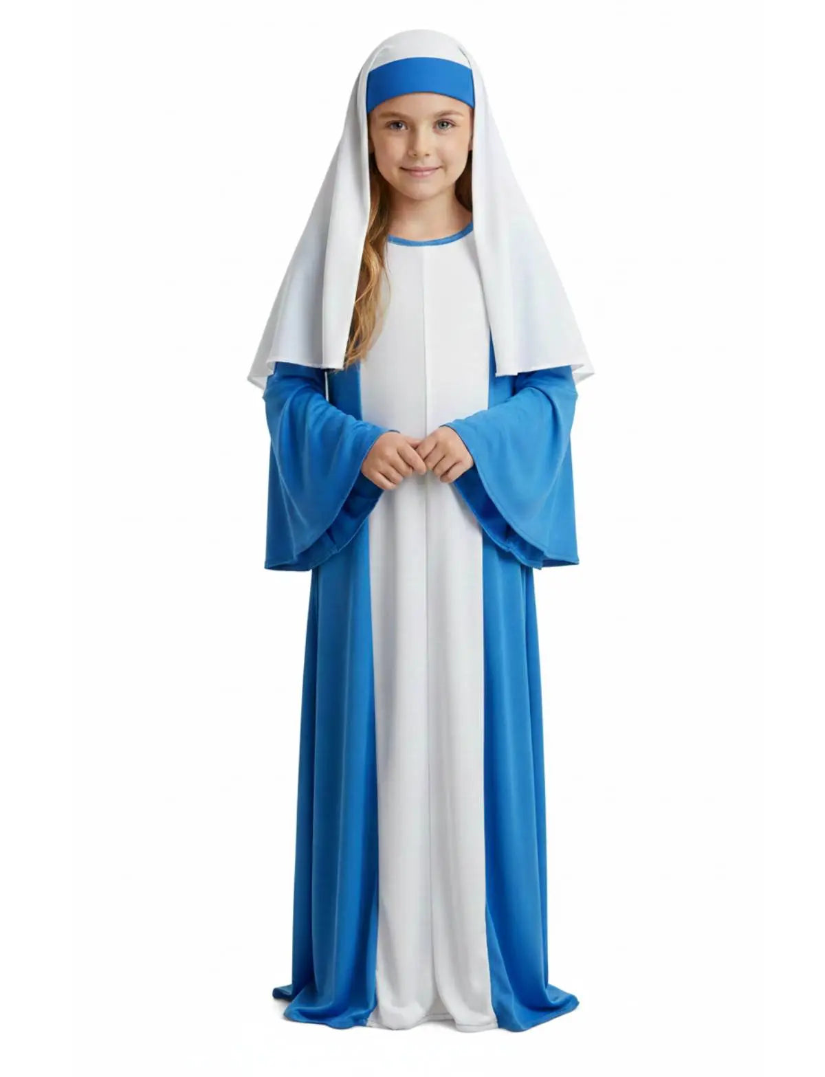 Bring authenticity and grace to any Christmas celebration with this beautifully crafted Girls Nativity Mary Costume. Designed especially for school plays, church events, fancy dress competitions, and festive performances, this outfit captures the classic look of Mother Mary with elegance and simplicity.