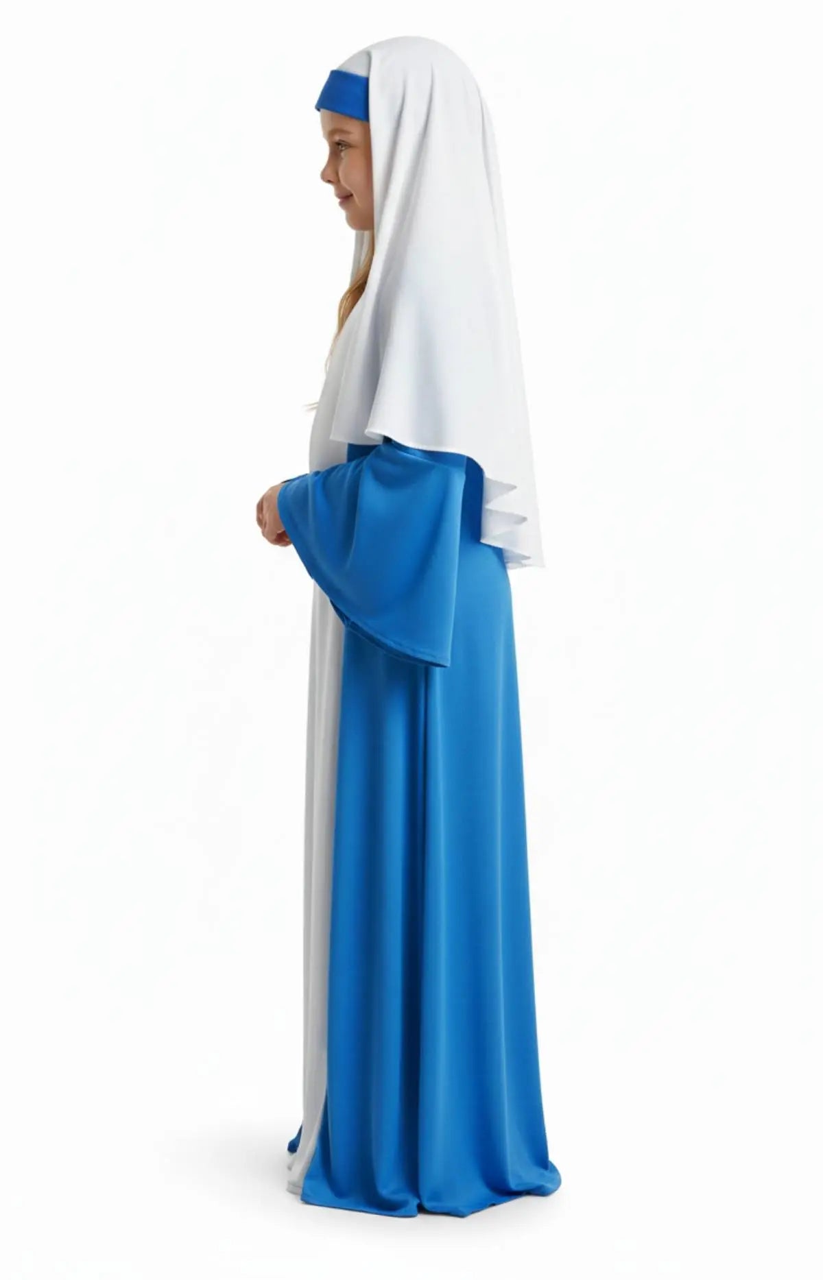 White Veil with Blue Headband – Comfortable and secure, giving a traditional Nativity look