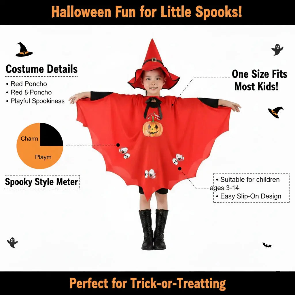 ✨ Let your little one shine this Halloween with our Kids Witch Cloak & Hat Costume Set — available in two spooky-cute colors: Red and Black.